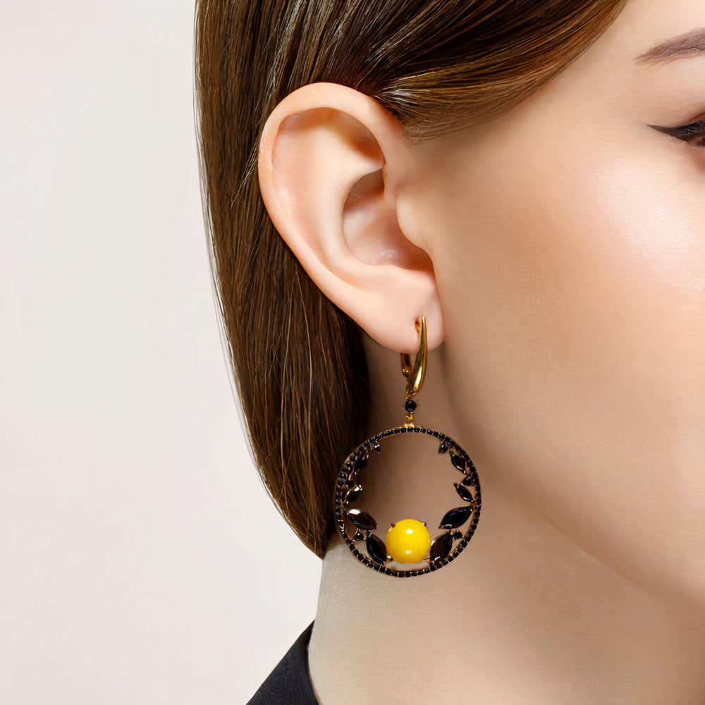 Diese Ohrhänger mit Bernstein sind wirklich einzigartig. Sie sind aus 925er Sterlingsilber gefertigt und zeigen eine großartige Kombination von Steinfarben - gelber Bernstein und schwarze Zirkonia. Und ihr majestätisches Design macht sie zu einem wirklich exklusiven Schmuckstück. Dieser Ohrschmuck ist unglaublich charmant, umwerfend und zauberhaft schön!