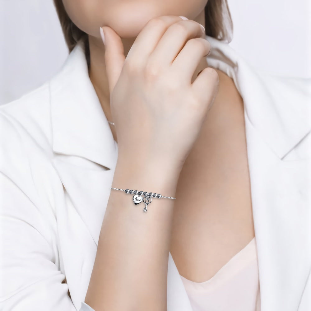 Dieses entzückende, romantische Armband schmeichelt die weibliche Hand besonders gut. Finde den Schlüssel zum Herzen deiner geliebten Frau. Dies wird dir dieser wunderbare Armschmuck helfen.