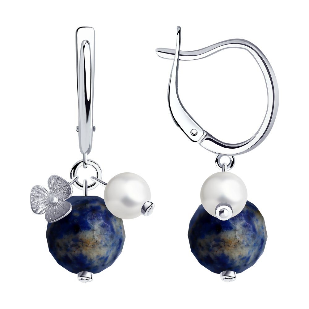 Silber Ohrhänger mit Sodalith und Swarovski Perle, blau/weiß