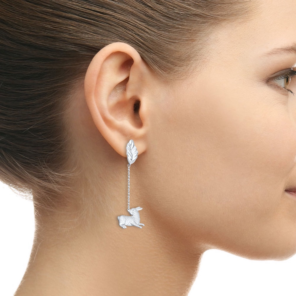 Das Design dieser Damenohrhänger ist von der Schönheit der Natur inspiriert. Einfach atemberaubende Ohrringe, die Sie mit Sicherheit nirgendwo anders finden werden. Ein Ohrring ist in Form eines Vogels und der andere in Form eines Hasen gestaltet. Die Schmuckstücke sind so filigran gearbeitet, dass sie aussehen, als wären sie lebendig.