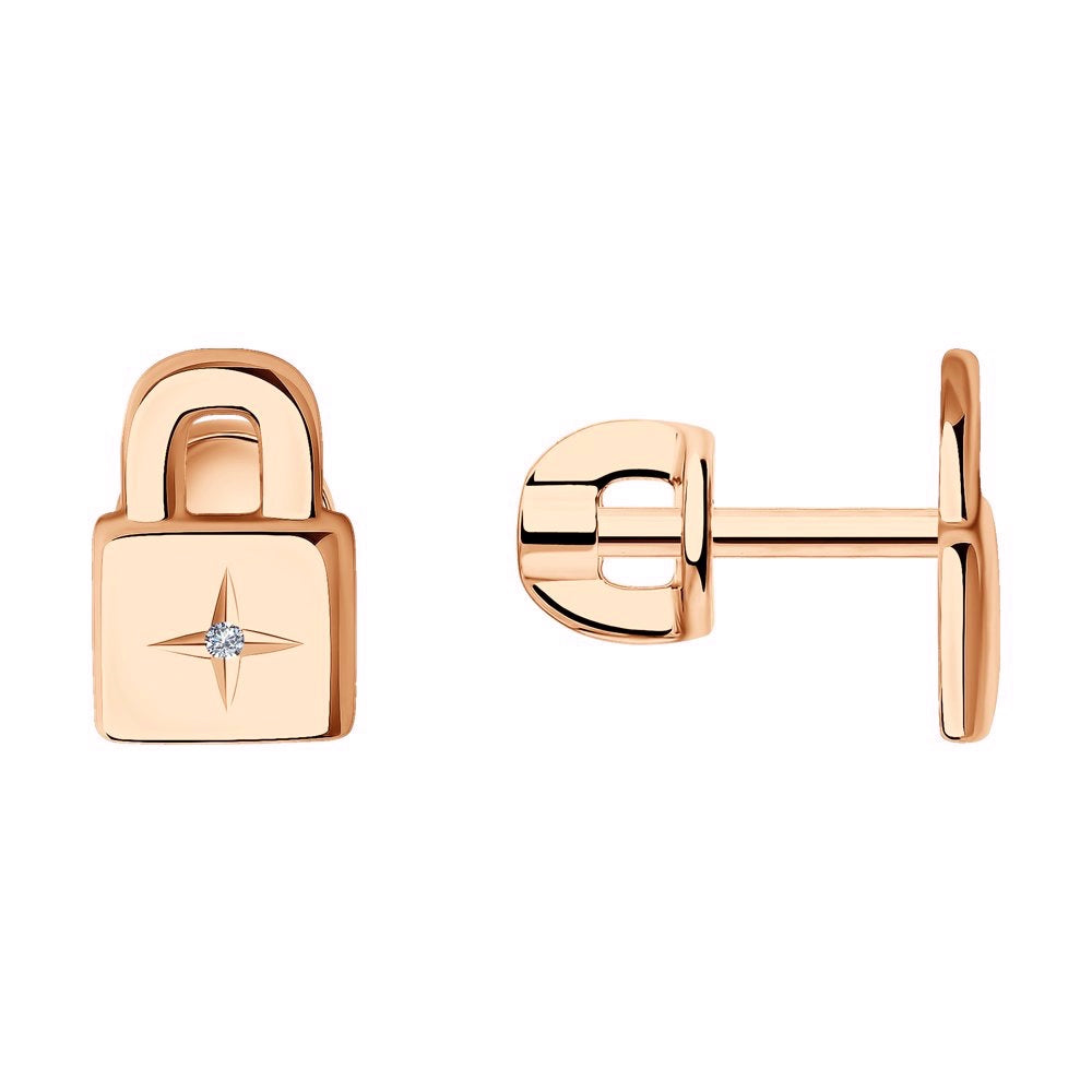 Die Ohrringe sind mit zwei kleinen Brillantschliff Diamanten (0,008 ct. W/SI) besetzt. Obwohl die Ohrringe sehr klein sind, sind Sie unverwechselbar und einzigartig. Die Ohrringe verfügen über eine Vergoldung und wurden mit einem Schloss-Design versehen. Die Ohrringe sind für alle Fashionistas geeignet, die etwas Besonderes suchen.