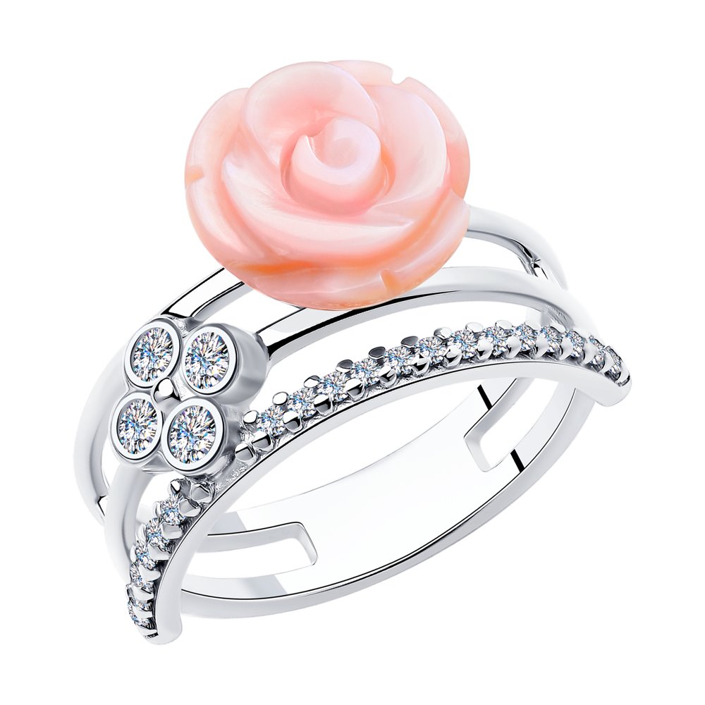 Silber Ring mit Perlmutt und Zirkonia, rosa