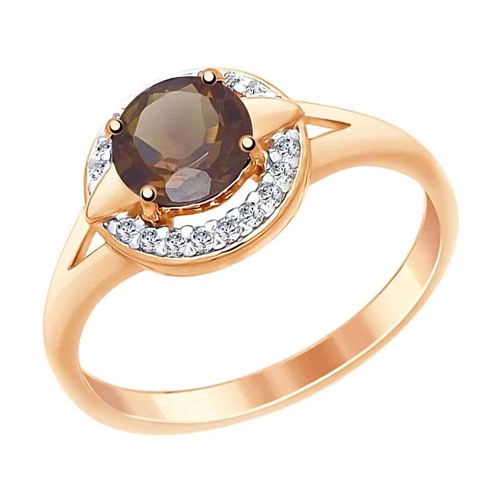 Silber Ring vergoldet mit Rauchquarz und Zirkonia, braun